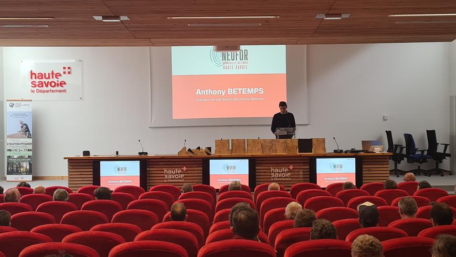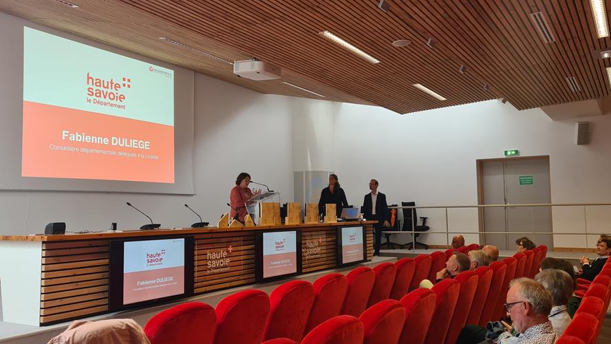La cérémonie a débuté par les interventions de Fabienne Duliège, conseillère départementale déléguée à la ruralité, Julien Haase, président du Pôle Excellence Bois, et Stéphan Dégeorges, directeur du CAUE de Haute-Savoie. Tous ont rappelé la richesse de la filière bois haut-savoyarde, au cœur d’un territoire où la culture de la construction bois est profondément ancrée.